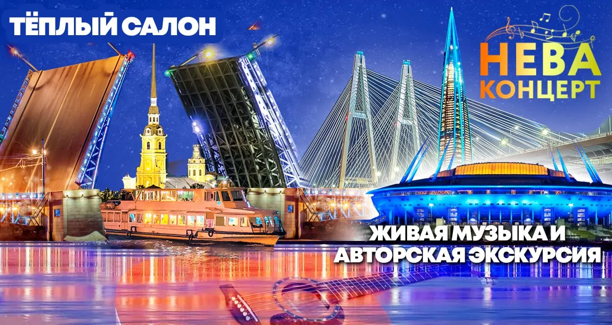 Трехчасовая прогулка с авторской экскурсией и живой музыкой в теплом салоне теплохода и разводными мостами